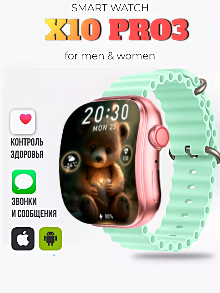 Cмарт часы X10 PRO3 Умные часы 45MM Series Smart Watch, Изогнутый экран AMOLED, iOS, Android, Bluetooth звонки, Мятный: сравнение цен, характеристики, фото, актуальное наличие и цены.