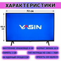 Cмарт телевизор Yasin 32 дюйма 80 см с Wi-Fi Android: сравнение цен, характеристики, фото, актуальное наличие и цены.