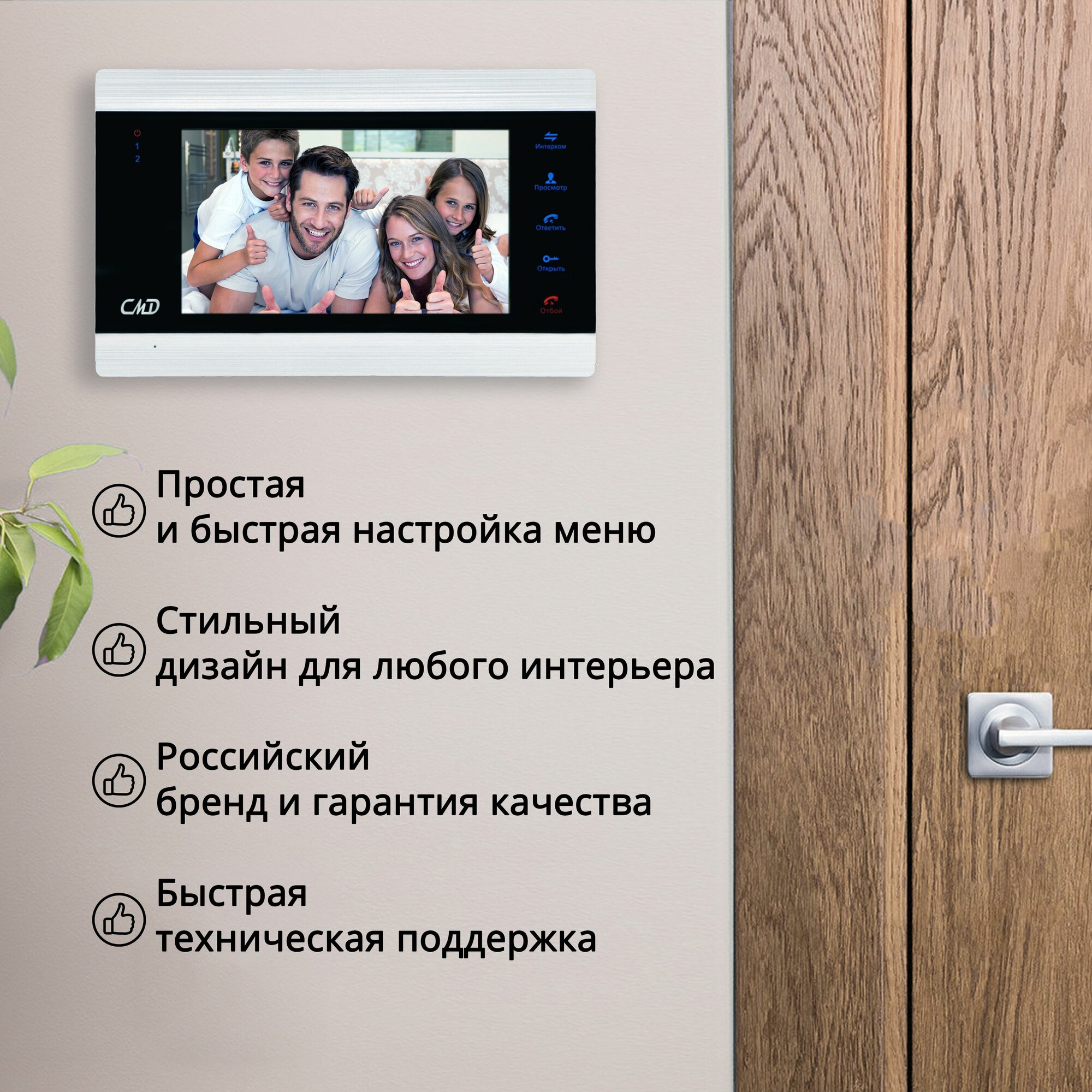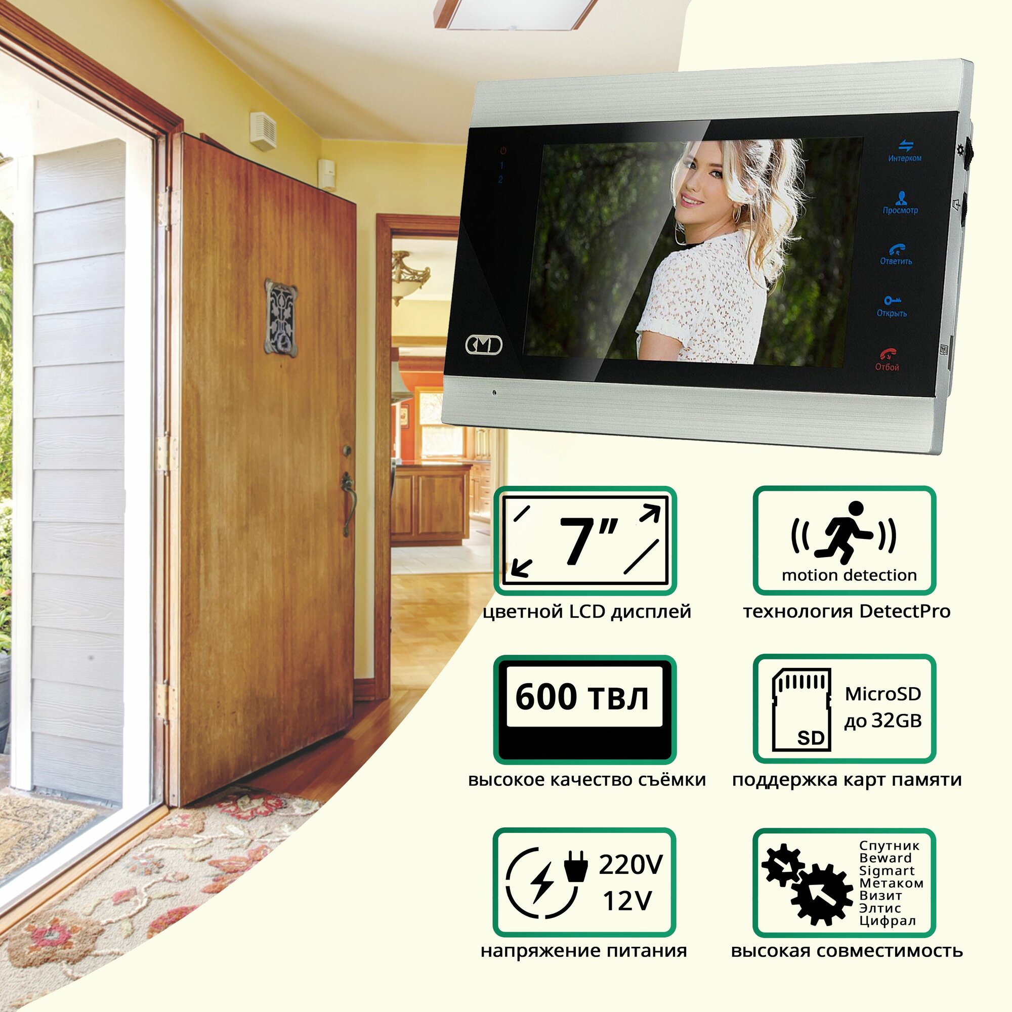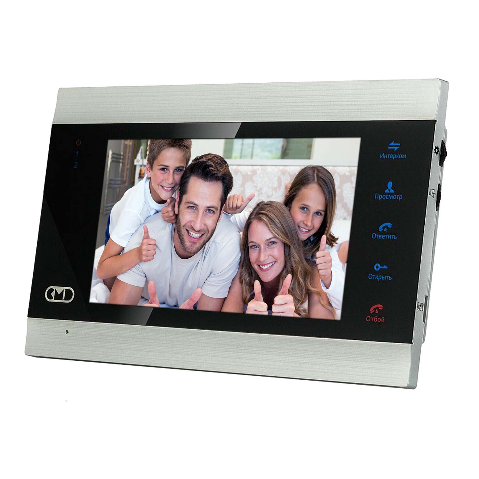 Монитор видеодомофона с большим дисплеем 7" - цветной с разрешением 800х480. Стильный дизайн в двухцветном (серебристый и черный) корпусе впишется в любой интерьер.