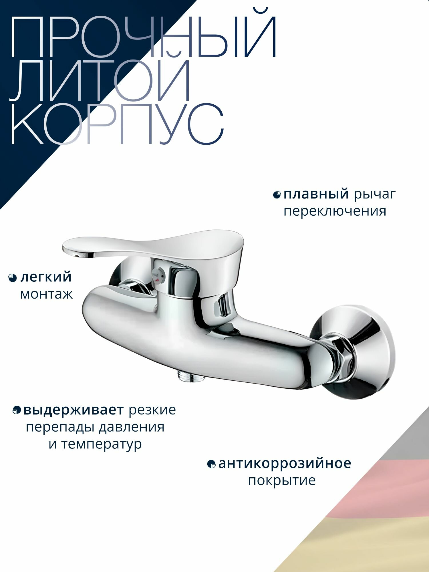 | Комплектация | Смеситель для ванны; шланг для душа 150см; лейка; держатель для лейки; отражатели; эксцентрики; прокладки |