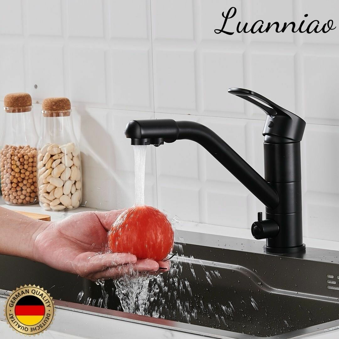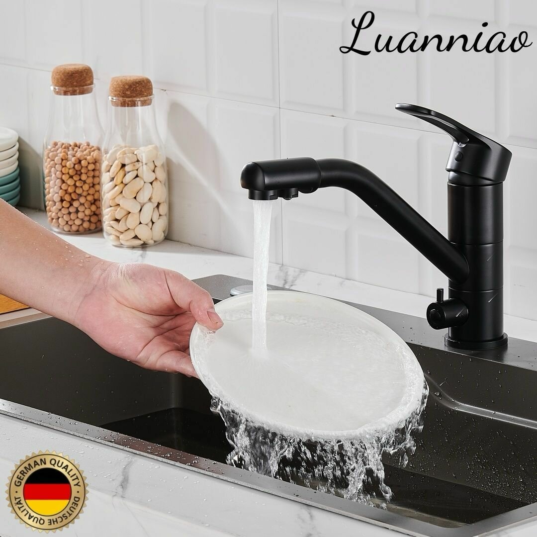 Купить Cмеситель для кухни однорычажный на мойку под фильтр с краном для питьевой воды Luanniao латунь, чёрный с доставкой по всей России.