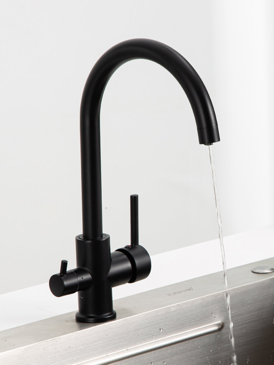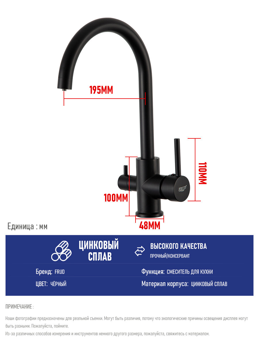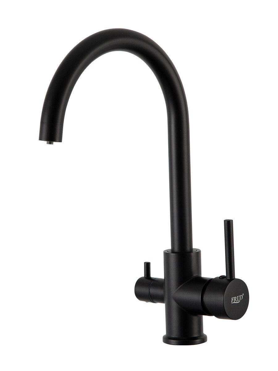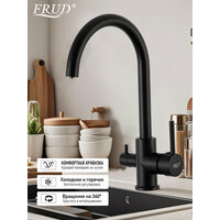 Cмеситель для кухонной мойки под фильтр с краном для питьевой воды и гибким изливом Frud Y40304, черный: сравнение цен, характеристики, фото, актуальное наличие и цены.