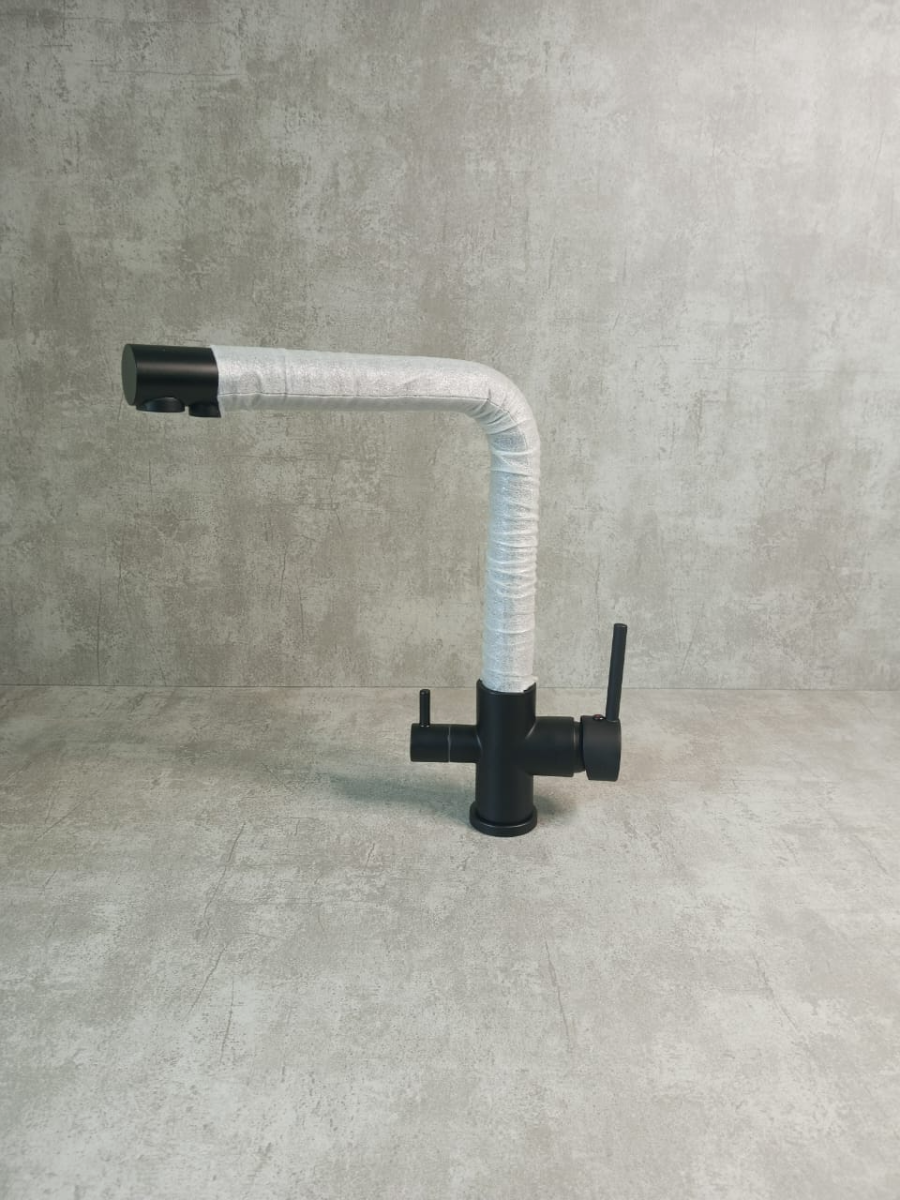 | Комплектация | Смеситель для кухонной мойки с подключением к фильтру с питьевой водой, нержавеющая сталь. Пластиковый аэратор с функцией легкой очистки. Керамический картридж 40 мм. Керамическая вентильная головка. Гибкая подводка 40 см - 3 шт. Гайка "втулка" для горизонтального крепления. Переходник для подключения шланга от фильтра с питьевой водой. Металлические рукоятки. |