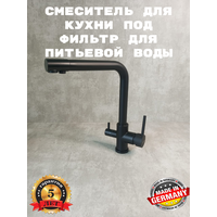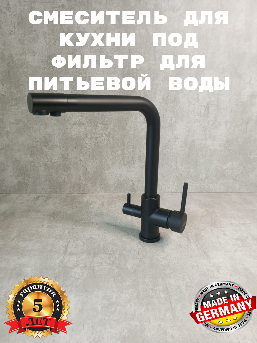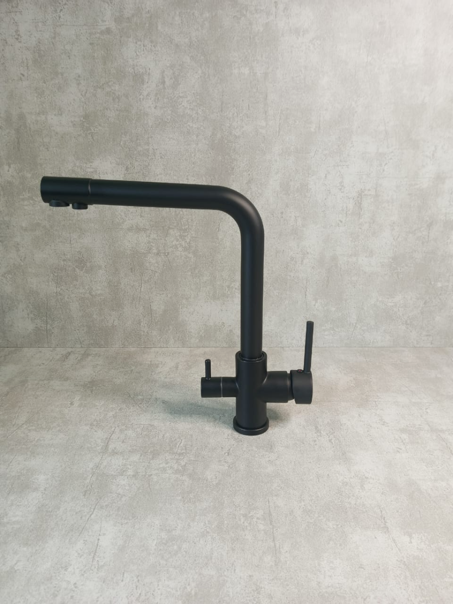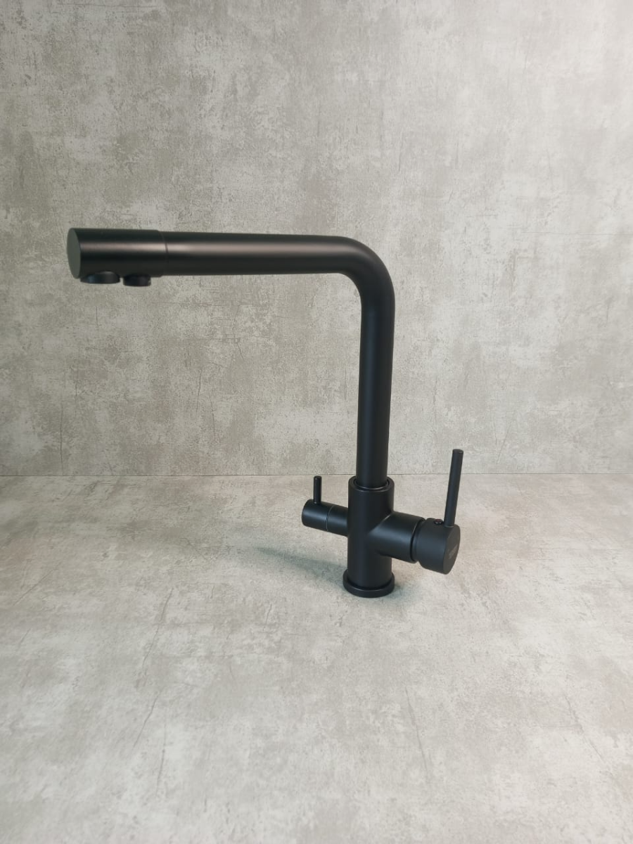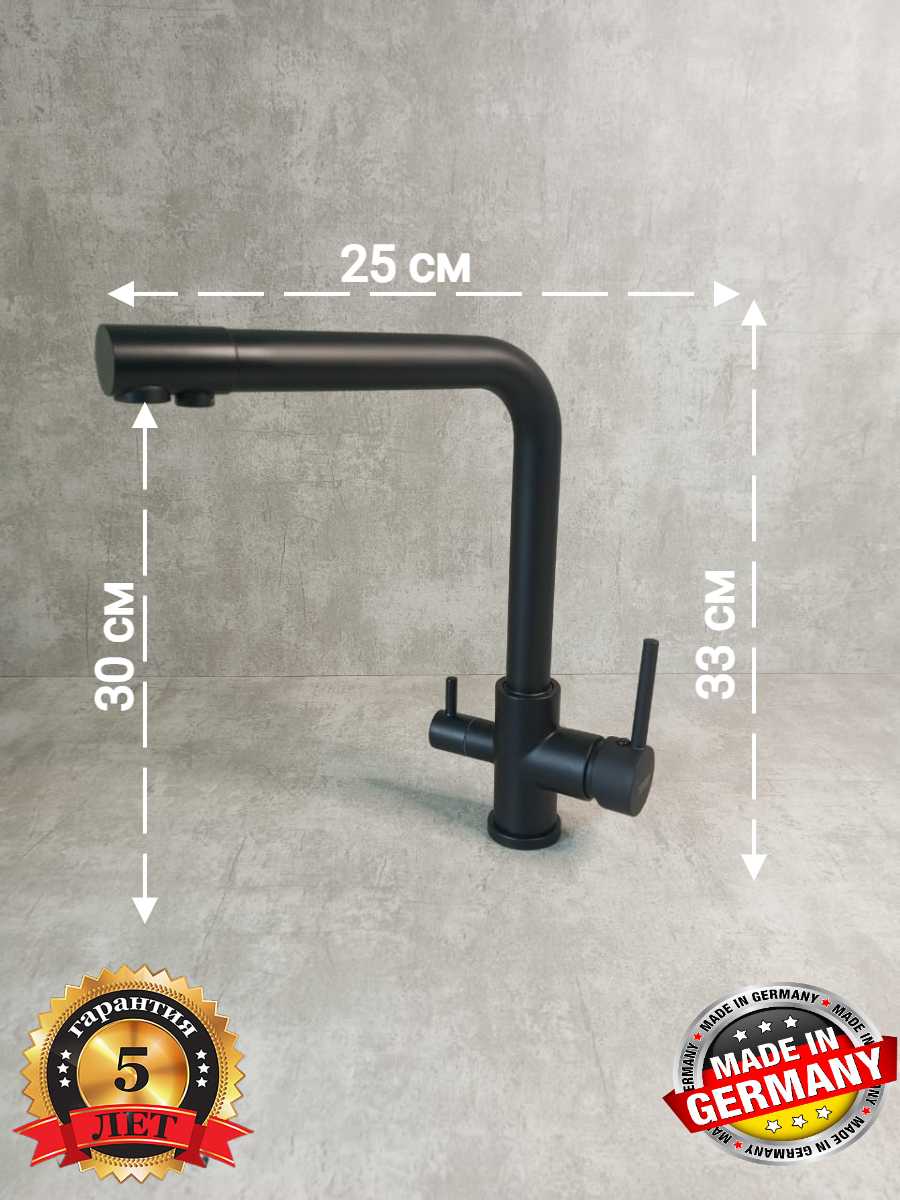 | Комплектация | Смеситель для кухонной мойки с подключением к фильтру с питьевой водой, нержавеющая сталь. Пластиковый аэратор с функцией легкой очистки. Керамический картридж 40 мм. Керамическая вентильная головка. Гибкая подводка 40 см - 3 шт. Гайка "втулка" для горизонтального крепления. Переходник для подключения шланга от фильтра с питьевой водой. Металлические рукоятки. |