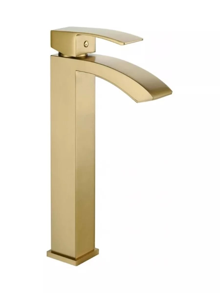 Смеситель для раковины высокий в ванную Grocenberg GB3007, латунь, матовое золото: сравнение цен, характеристики, фото, актуальное наличие и цены.