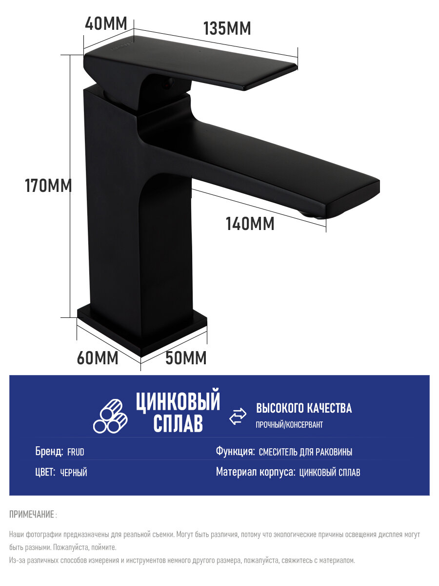 Купить Cмеситель для раковины в ванную Чёрный Frud YF10503-6, высокая устойчивость к коррозии с доставкой по всей России.
