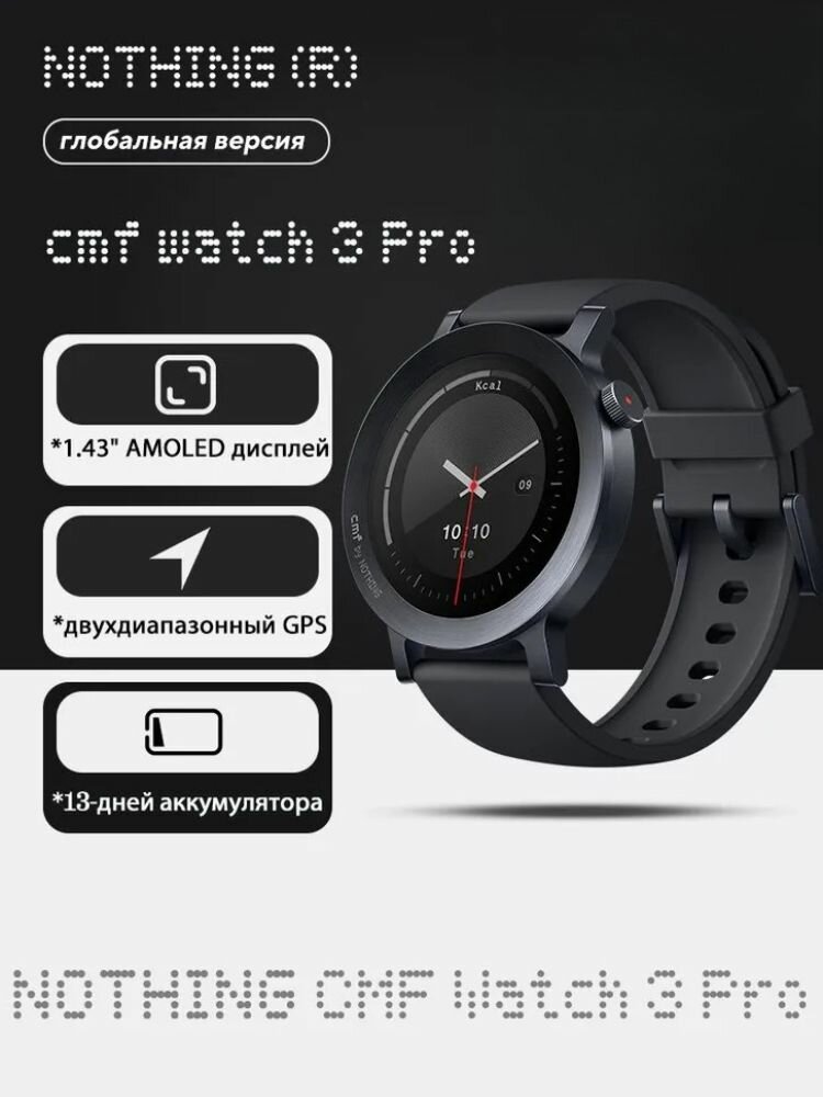 CMF by Nothing Watch 3 Pro Умные часы 1,43-дюймовые AMOLED с двухдиапазонным GPS Bluetooth вызовом, водонепроницаемые: сравнение цен, характеристики, фото, актуальное наличие и цены.