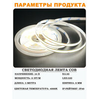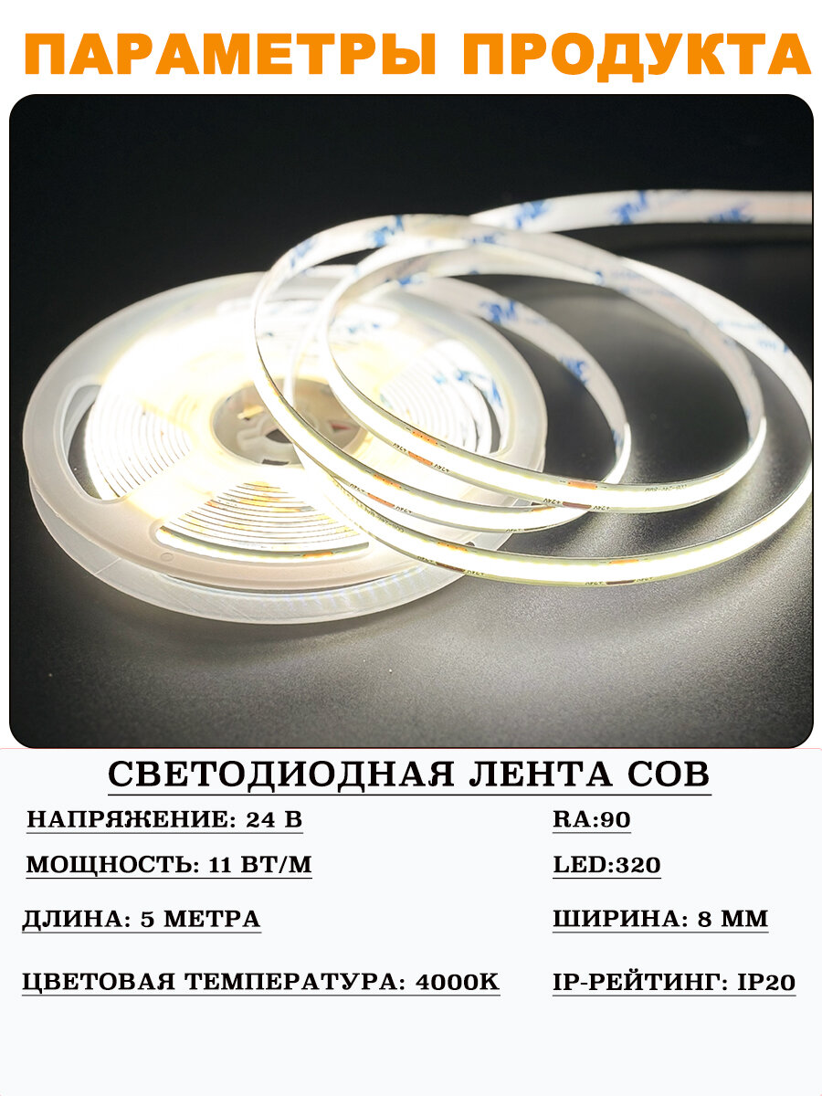 Купить COB Светодиодная лента 5 метров 24V нейтральный белый свет 4000K (320 LED/м) с доставкой по всей России. COB Светодиодная лента 5 метров 24V нейтральный белый свет 4000K (320 LED/м): сравнение цен, характеристики, фото, актуальное наличие и цены.