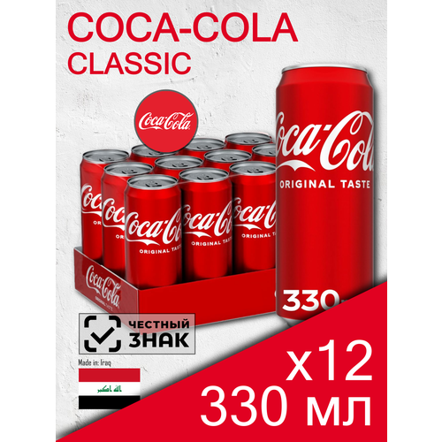 Coca Cola Classic, 0.33 л, алюминиевая банка, 12 шт — газированный напиток Кока Кола Классик, производство Ирак