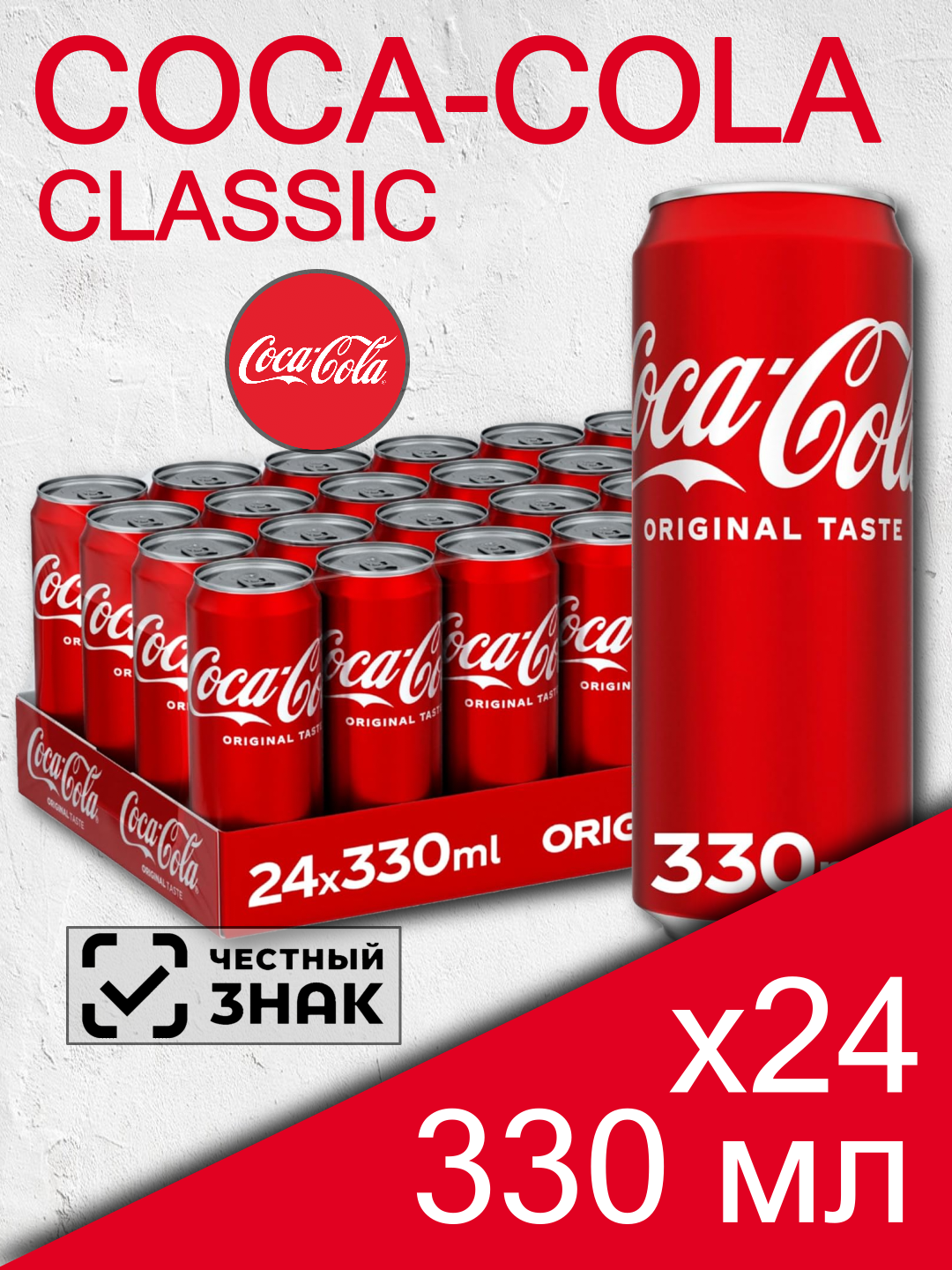 Купить Coca Cola Classic, 0.33 л, 24 шт, банка, газированный напиток Кока Кола Классик, жб, классический) с доставкой по всей России.
