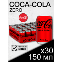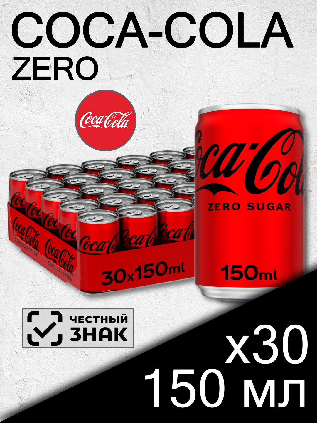 Coca Cola Zero, 0.15 л, 30 шт, металлическая банка (газированный напиток Кока Кола Зеро, без сахара, диетический, жб): сравнение цен, характеристики, фото, актуальное наличие и цены.