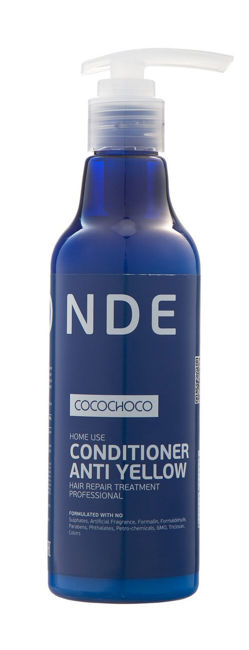 Кондиционер Blonde Conditioner Anti Yellow был разработан специально для ежедневного ухода за блондированными волосами. Очень часто после обесцвечивания волосы становятся жесткими, грубыми, теряют блеск и силу, и поэтому нуждаются в особом тщательном уходе. Кондиционер CocoChoco помогает вернуть волосам жизненную силу и продлить эффект от процедуры кератинового восстановления. Он глубоко проникает в структуру волоса, тем самым обеспечивая интенсивное увлажнение, восстановление и заполнение пористых повреждённых участков. Кондиционер помогает его нейтрализовать. Кондиционер не содержит красителей, нейтрализация происходит за счет светоотражающих компонентов, поэтому он подходит для ежедневного использования. Не содержит сульфатов, искусственных отдушек, формалина, формальдегида, парабенов, фталатов, нефтехимических продуктов, ГМО, триклозана, красителей.