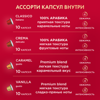Купить COFFESSO Ассорти капсул Nespresso 4 вкуса, Classico Italiano, Crema Delicato, Vanilla, Caramel, 40 шт с доставкой по всей России.