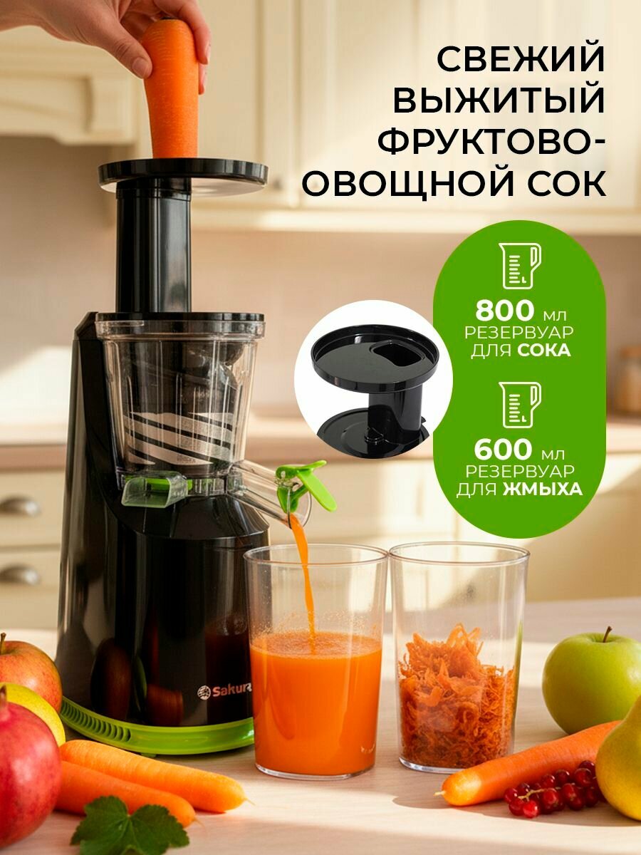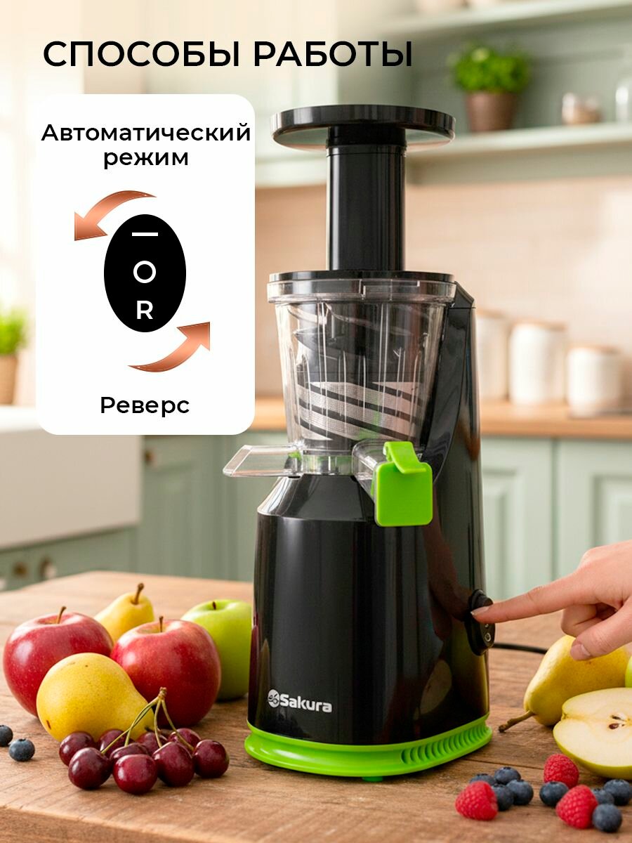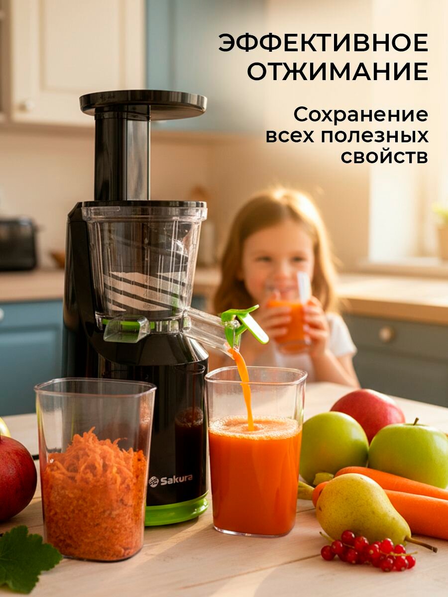Купить Cоковыжималка электрическая для овощей и фруктов Sakura SA-6513BGR 200Вт шнековая с доставкой по всей России.