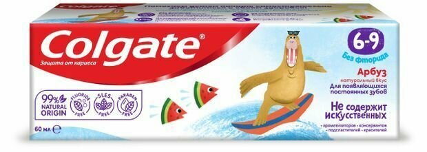 Colgate Зубная паста детская 6-9 Арбуз без фторида, 60 мл, 2 шт: сравнение цен, характеристики, фото, актуальное наличие и цены.