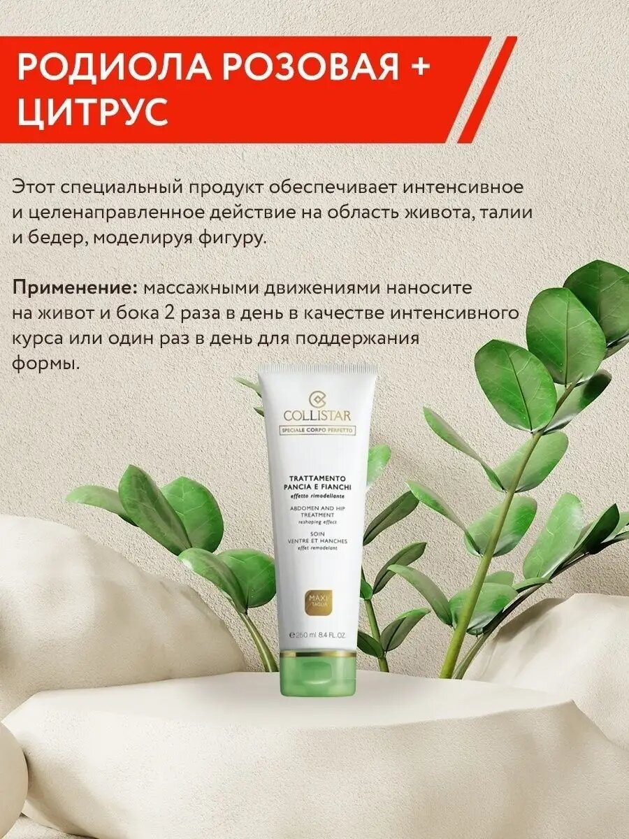 Дополнительно крем оказывает антицеллюлитное воздействие, делает кожу на бедрах и животе гладкой и безукоризненной. При регулярном использовании данное средство позволяет уменьшить объем бедер и убрать жировую «подушку» с живота, помогая достичь идеальных пропорций фигуры.