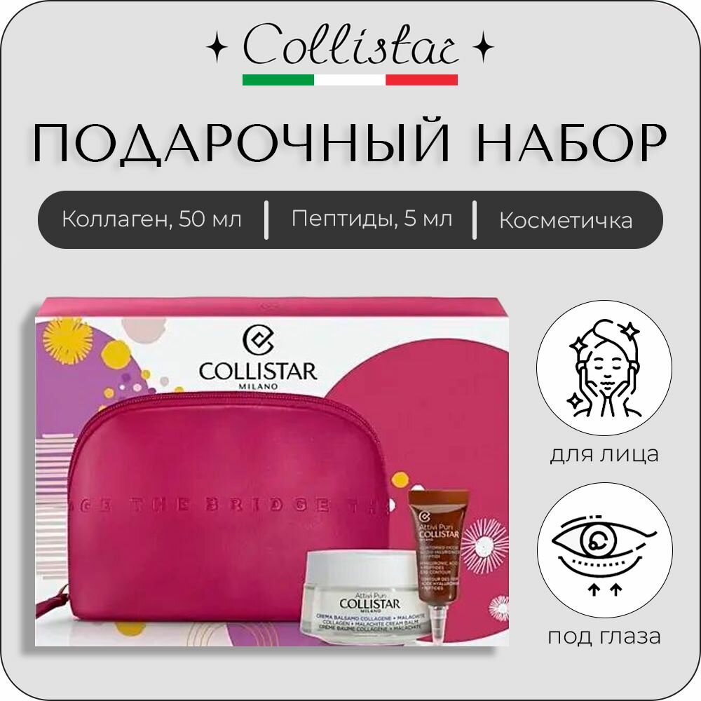 Collistar — Набор: Коллаген 50 мл + Гиалуроновая кислота для контура глаз — Пептиды 5 мл + Косметичка: сравнение цен, характеристики, фото, актуальное наличие и цены.