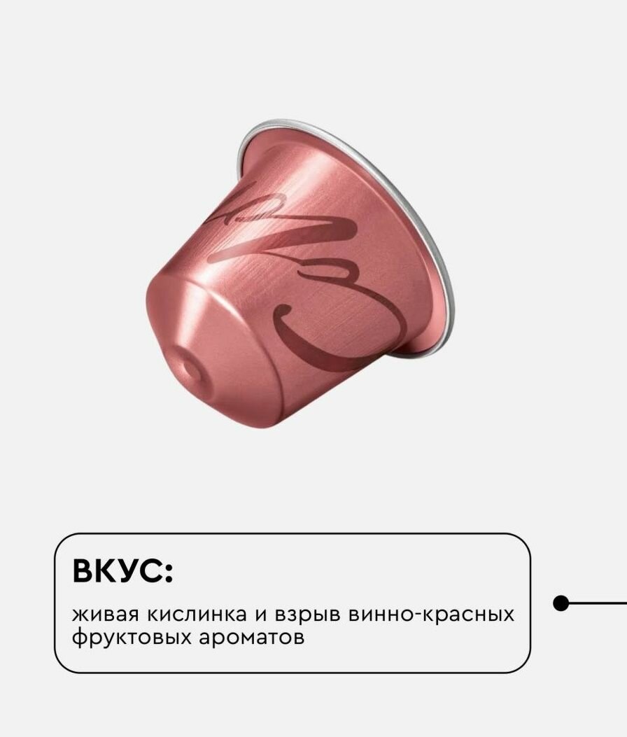 Кофе в капсулах Colombia – это с арабика позднего урожая, одновременно мягкая и фруктовая. Почувствуйте вкус винных красных фруктов, нот черной смородины и клюквы, которые раскроются перед вами, пока вы наслаждаетесь вашей чашечкой кофе. Выраженная кислотность вкуса, но не зерен, делает этот кофе невероятным и полным жизни. Откройте для себя непревзойденное качество кофе в капсулах от Nespresso, признанного лидера в мире кофейных инноваций. Наслаждайтесь подлинным вкусом, представленным в разнообразных сортах арабики и робусты, чтобы каждая чашка кофе стала для вас незабываемым впечатлением. Капсулы для кофемашины Nespresso, доступные в линейках Vertuo и Original, станут идеальным выбором для тех, кто ценит свое время. Погрузитесь в мир искусства кофе и приготовьте свой любимый напиток, будь то американо, эспрессо, капучино, латте или лунго всего за несколько секунд. Каждая чашка кофе станет настоящим произведением кофейного искусства. Подарите себе и своим близким оригинальные капсулы кофе Nespresso в качестве элегантных подарочных наборов кофе для настоящих ценителей. Не упустите возможность пользоваться специальными акциями и приобретать вкусные наборы кофе по особой цене. Превратите свой дом в уютное кофейное заведение с капсульным кофе Неспрессо - каждая чашка приносит настоящее удовольствие и наслаждение. Капсулы рекомендуется хранить в контейнере или ящике вдали от источников тепла и прямого света.