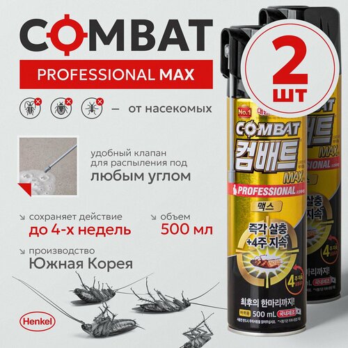 Аэрозоль Combat Professional MAX эффективно уничтожает тараканов и их кладку, клопов, блох, древоточцев, кожеедов, клещей, пауков, муравьев, личинок моли. В состав средства входит имипротрин, обладающий исключительно быстрым действием, и цифенотрин, который вызывает высокую смертность, обладает остаточным действием и низкой токсичностью в отношении животных. Аэрозоль оснащен гибкой насадкой на распылителе, которая позволяет уничтожать насекомых даже в труднодоступных местах: в щелях вдоль плинтусов и за дверными коробками, в стенах и на кафеле. Кроме этого, использование насадки позволит вам аккуратно распылить средство, избегая попадания на обои, ткань или бытовую технику. Слабый и приятный запах, который быстро выветривается. Рекомендовано использовать в соответствии с инструкцией в жилых и офисных помещениях, гостиницах, детских и лечебных учреждениях, на производственных и пищевых объектах. Стремительный эффект, длительное действие, профилактика.