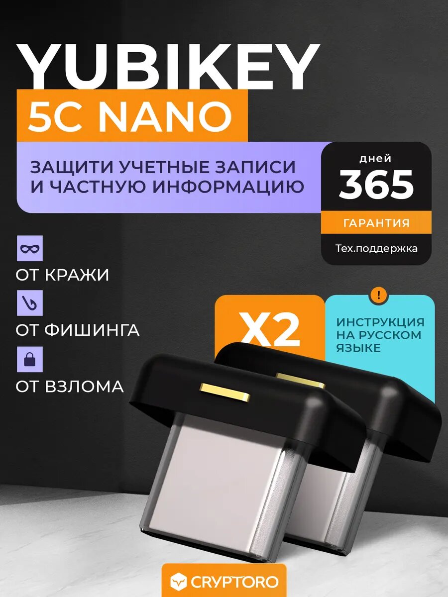 Аппаратные ключи аутентификации Yubikey 5С Nano (2 штуки) от CRYPTORO (прошивка 5.2 — 5.4): сравнение цен, характеристики, фото, актуальное наличие и цены.