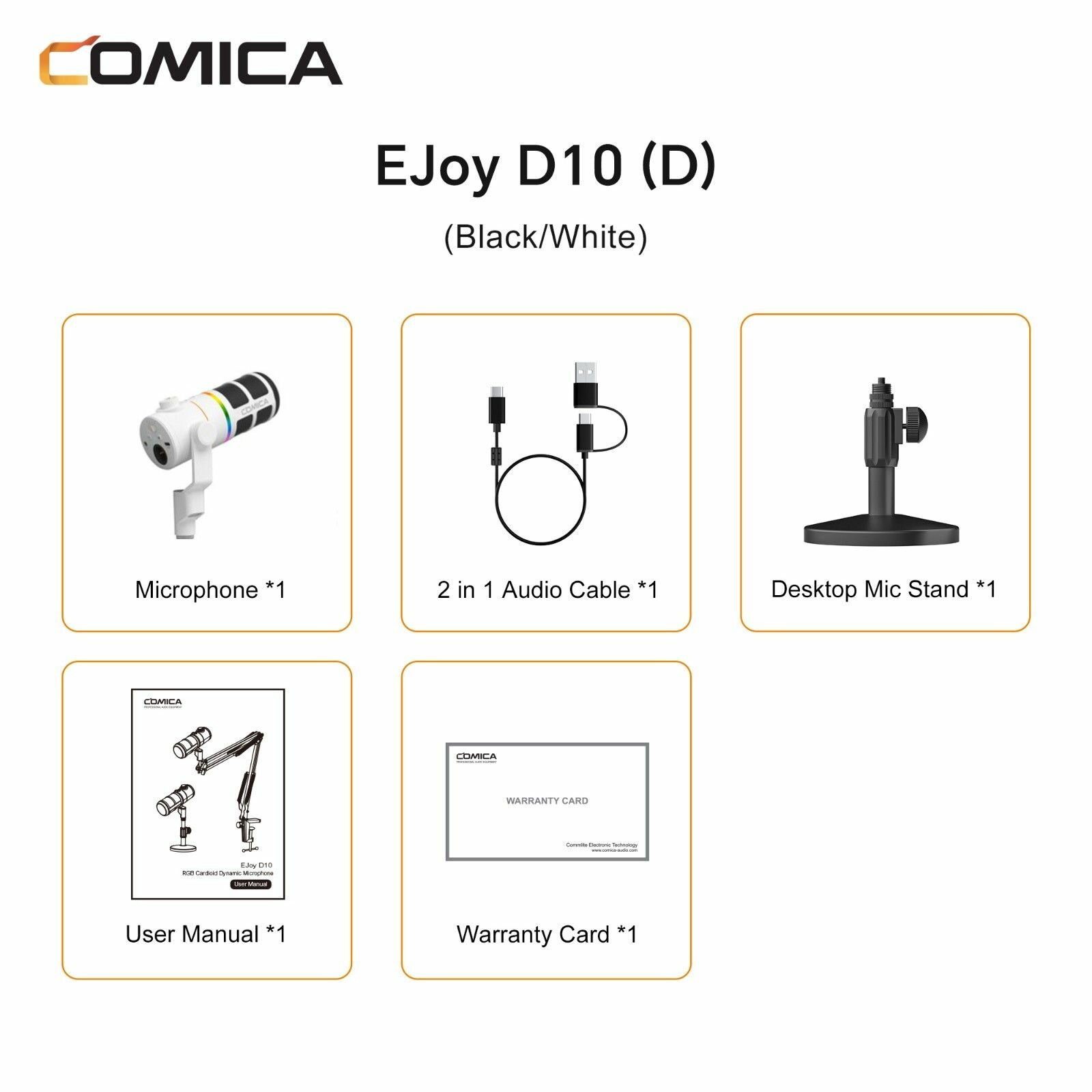 COMICA EJoy D10 D USB/XLR динамический микрофон с RGB-подсветкой — кардиоидный микрофон студийного качества (белый): сравнение цен, характеристики, фото, актуальное наличие и цены.