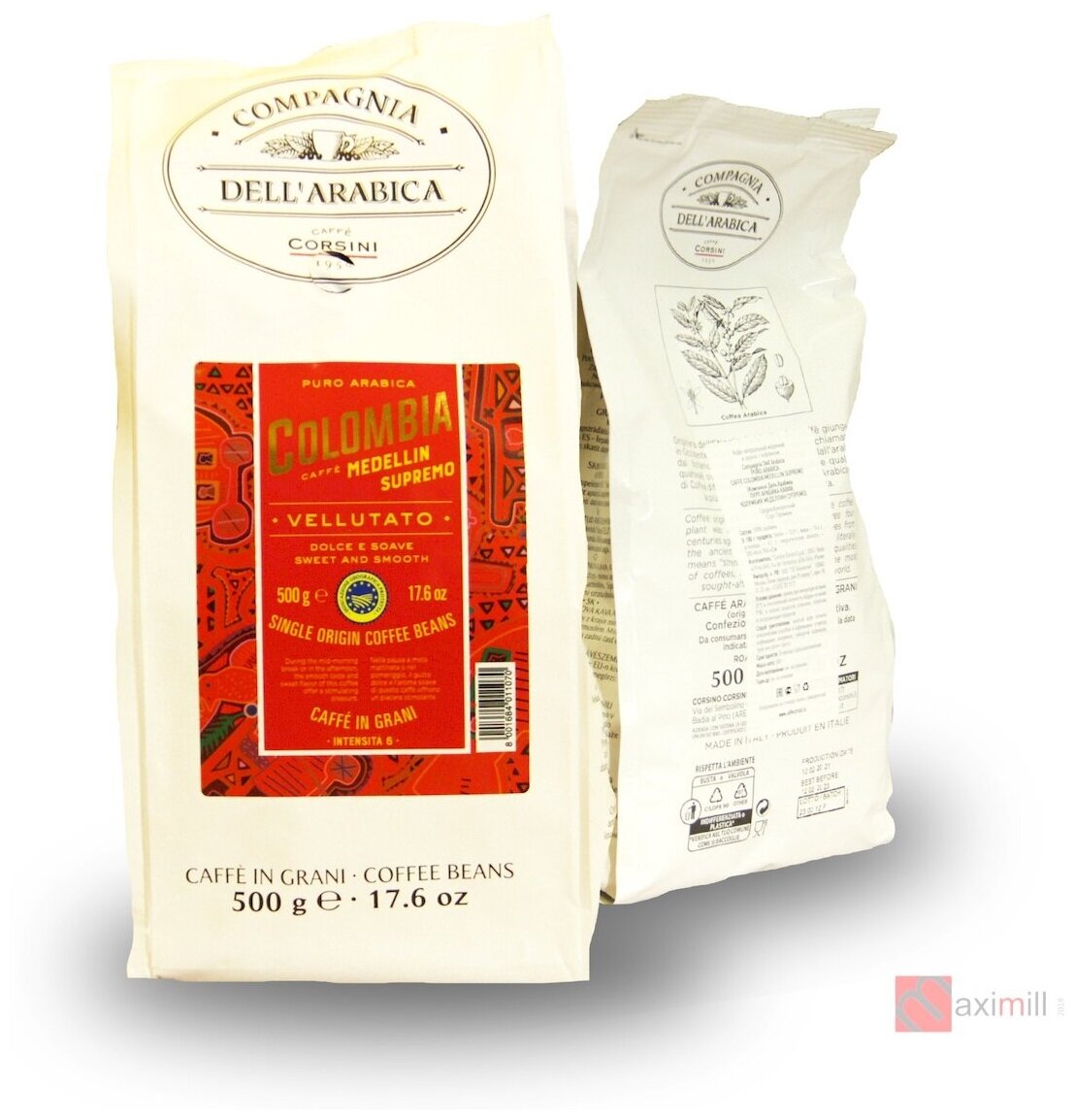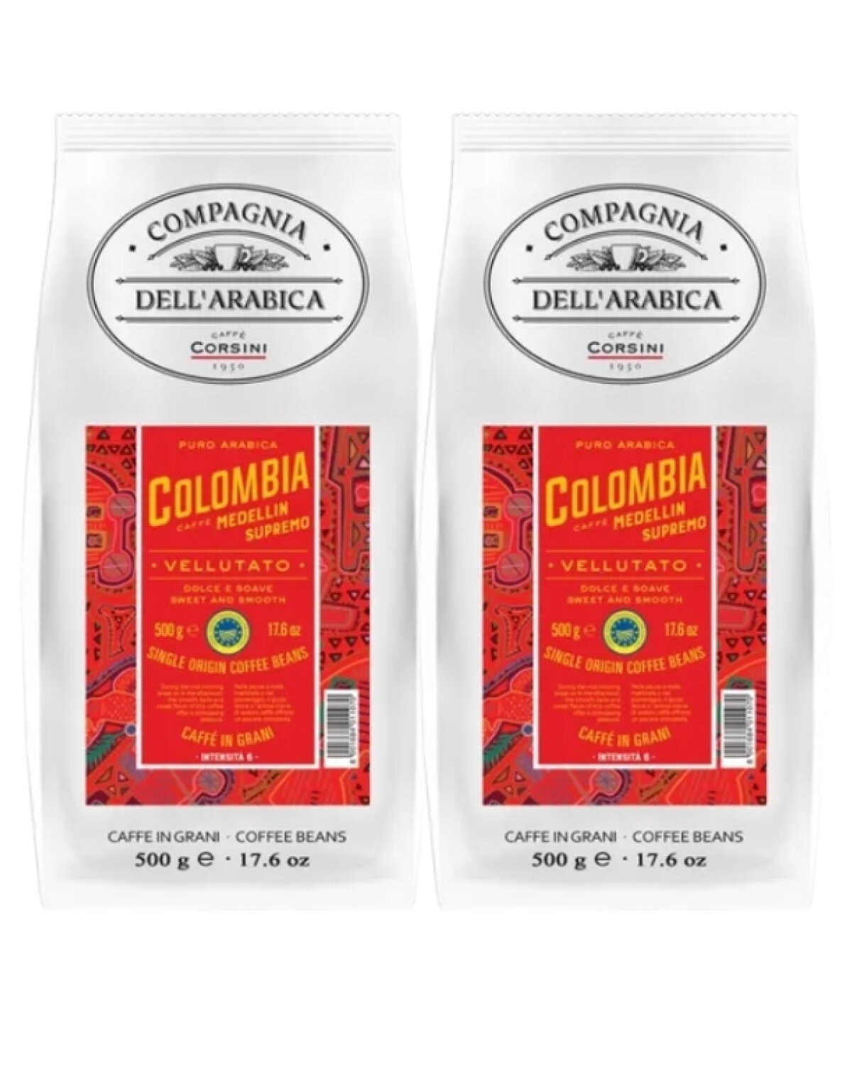 Купить Compagnia Dell’ Arabica (Corsino Corsini) Кофе в зернах Puro Arabica Colombia Medellin Supremo, 2 упаковки по 500 гр с доставкой по всей России.