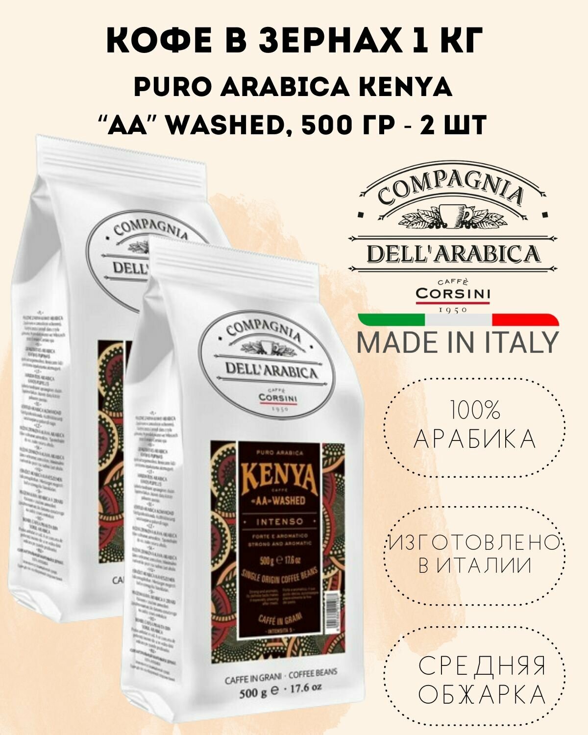 Compagnia Dell’ Arabica (Corsino Corsini) Кофе в зернах Puro Arabica Kenya «AA» Washed, 2 упаковки по 500 гр: сравнение цен, характеристики, фото, актуальное наличие и цены.