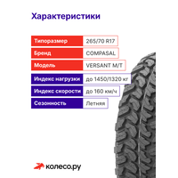 Шины летние Compasal Versant M/T 265/70 R17 121/118Q нешипованная летняя резина: сравнение цен, характеристики, фото, актуальное наличие и цены.