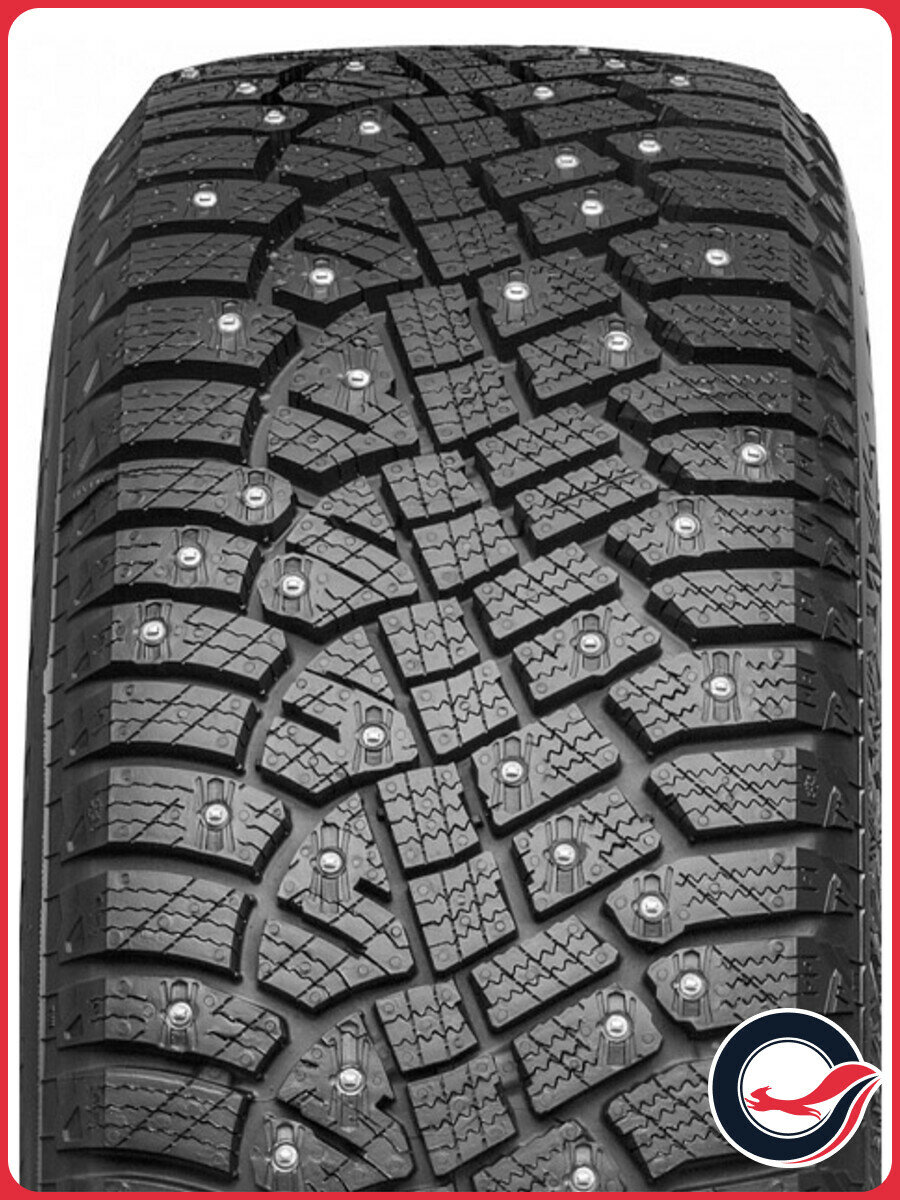 При разработке системы ошиповки данной модели был использован ряд решений, хорошо зарекомендовавших себя у шины Continental ContiIceContact 2 SUV предыдущего поколения. Речь идет, прежде всего, о многогранной вытянутой поперек движения форме шипа. Это заметно повышает продольные сцепные характеристики на льду и укатанном снегу. Кроме того, немецкие шинники предпочли не отказываться от технологии фиксации шипов при помощи специального клеящего состава. Его новая версия позволяет этим стальным элементам оставаться в протекторе при нагрузке до полусотни килограмм.
