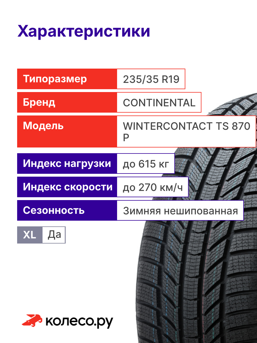 Шины Continental WinterContact TS 870 P являются зимними и предназначены для легкового автотранспорта. Также их можно ставить на некоторые виды паркетников и внедорожников. Модель имеет нешипованный направленный протектор, адаптирована к низким температурам и скользким зимним дорогам, и отличается следующими достоинствами: