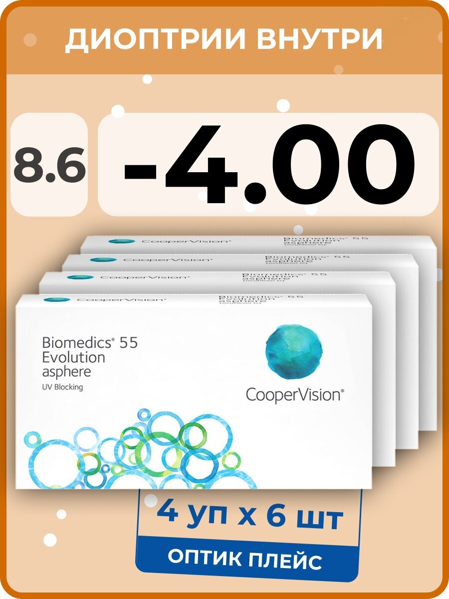 Купить CooperVision Biomedics 55 Evolution Asphere (4 упаковки по 6 линз) -4.00 R 8.6 с доставкой по всей России. CooperVision Biomedics 55 Evolution Asphere (4 упаковки по 6 линз) -4.00 R 8.6: сравнение цен, характеристики, фото, актуальное наличие и цены.