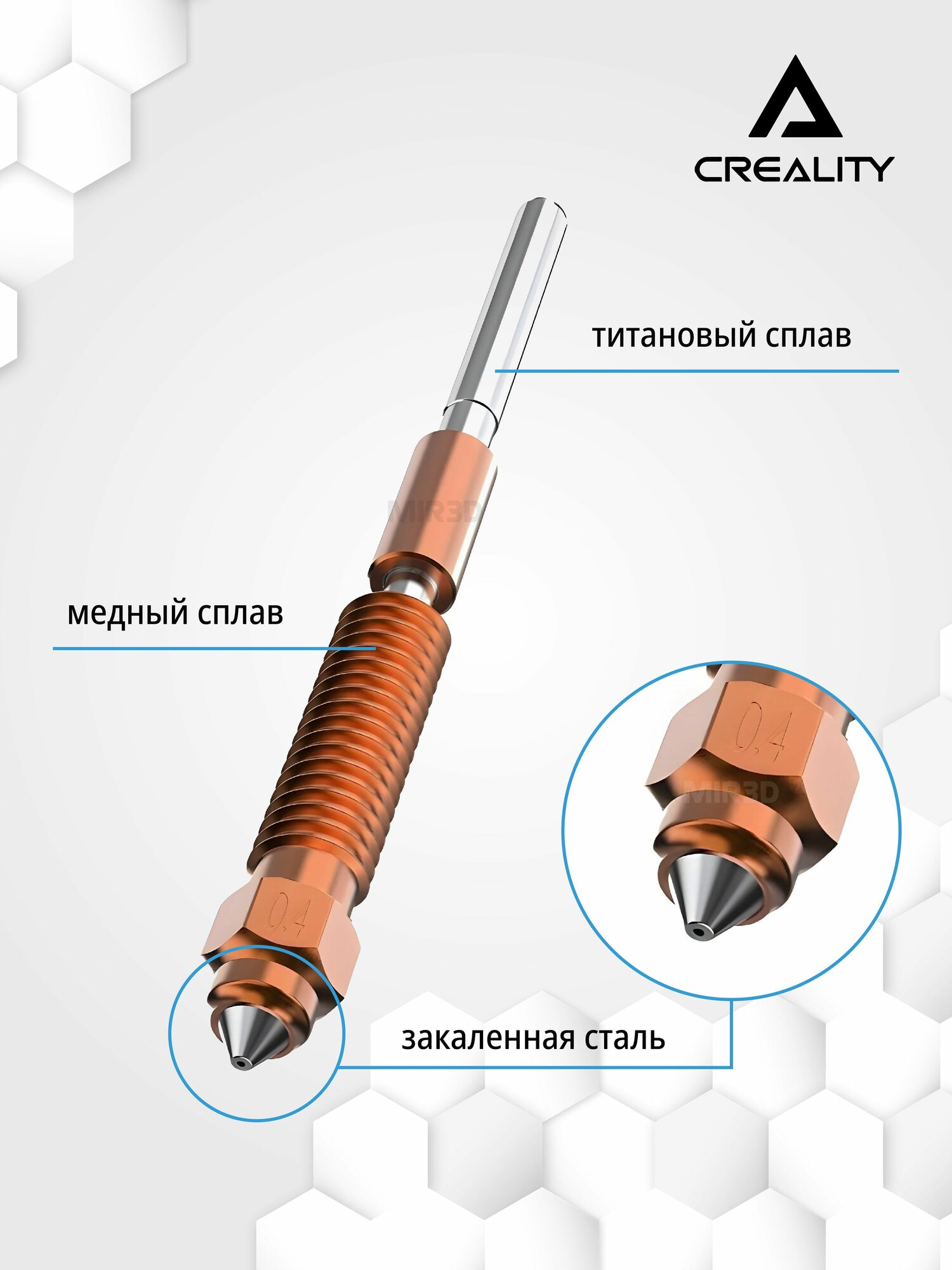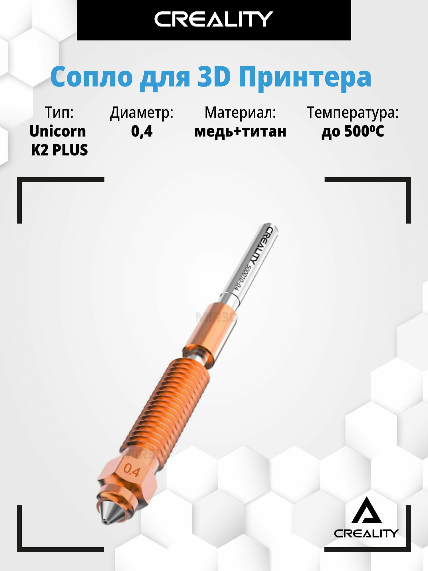 Сопло биметаллическое Unicorn для Creality K2 — 0.4 мм (быстросъёмное)