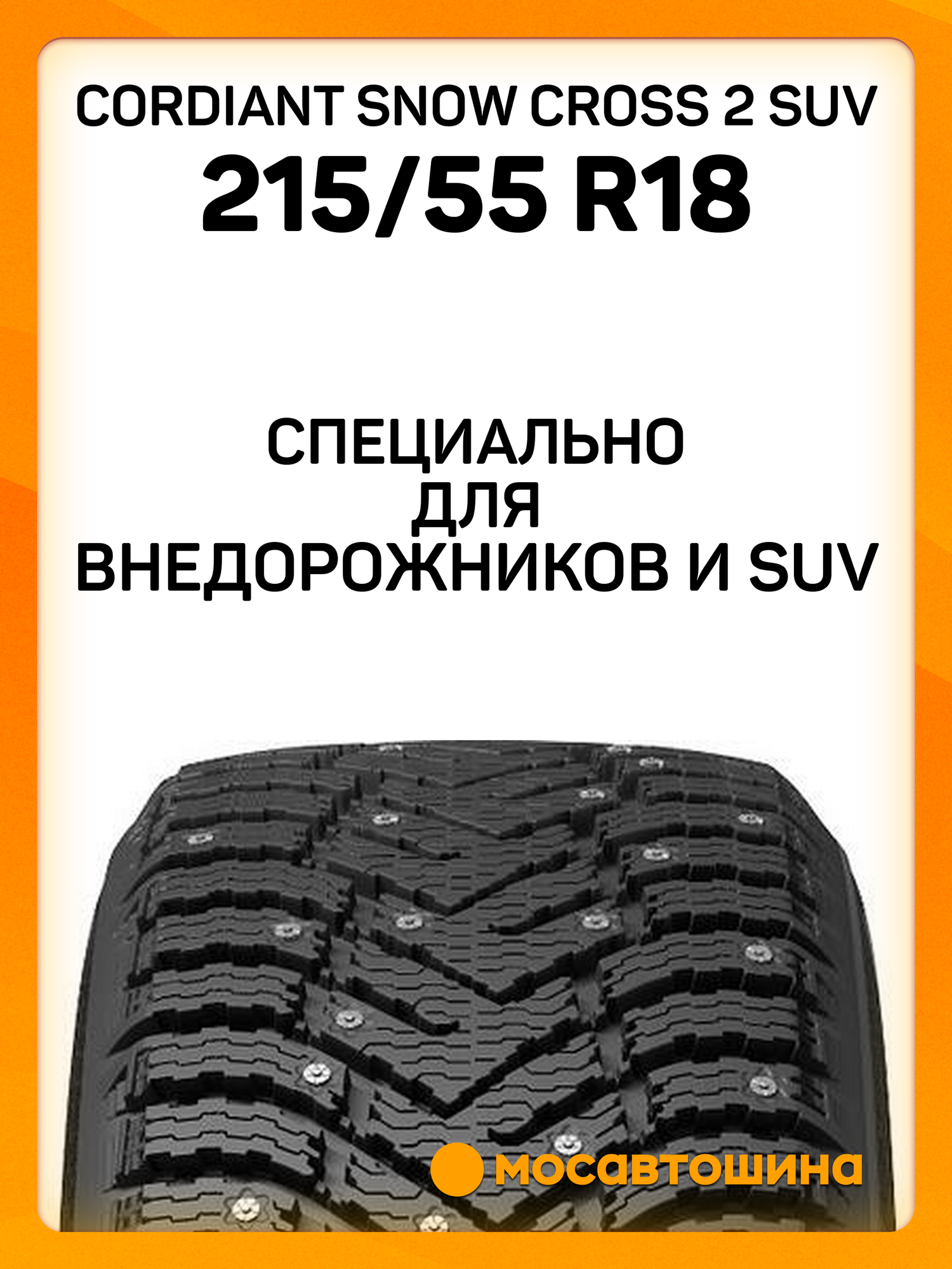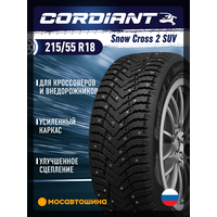 Шины Cordiant 215/55 R18 Snow Cross 2 Suv 99T Шипы Зимняя для легковых автомобилей и кроссоверов: сравнение цен, характеристики, фото, актуальное наличие и цены.