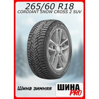 Шина зимняя шипованная CORDIANT 265/60/18 T 114 SNOW CROSS 2 SUV Ш. для легковых автомобилей 686211490: сравнение цен, характеристики, фото, актуальное наличие и цены.