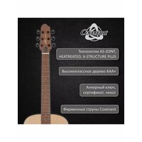 Тип: гитара трансакустическая. Форма корпуса: гранд аудиториум Корпус: 40' Верхняя дека: Массив ситхинской ели A+ обработанный по технологии Heat-treated Задняя дека и обечайки: Африканский саппеле Гриф: Африканский махагони обработанный по технологии Heat-treated Накладка грифа: палисандр обработанный по технологии Heat-treated со вставками из настоящей ракушки. Бридж: палисандр обработанный по технологии Heat-treated Порожки: кость Колки: Covenant T2P 1:21 Крепление грифа к корпусу выполнено по технологии AS-Joing Система пружин: X-Structure Цвет: натуральный. Покрытие: матовое Струны: covenant S253 phosphor bronze coated Звукосниматель: В комплекте: чехол, сертификат качества, инструкция, салфетка, 2 медиатора, защитная наклейка, анкерный ключ. Пятка грифа: HF Comfort desight Производство: Китай.
