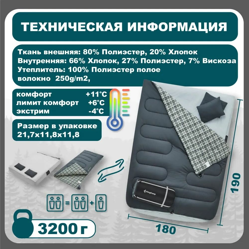 Cпальный мешок туристический KingCamp 2206 AIRBED SLEEPINGBAG 250D -4С, т. серый: сравнение цен, характеристики, фото, актуальное наличие и цены.
