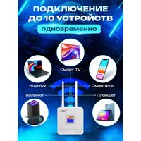 Wi-Fi роутер i-telecom WIFI роутер 4G С 4 антеннами Роутер wifi CPE903 i-telecom 4G Wifi роутер – это лучшее решение получения интернета, как для квартиры и дома, так и для дачи. Маршрутизатор поддерживает частоты Wi-Fi в 2.4 ГГц, что позволяет поддерживать высокоскоростной стандарт передачи данных LTE со скоростью до 300 Мбит/сек. Компактный вай фай роутер работает с сим картой для раздачи интернета. 4g LTE wifi роутер работает от адаптера питания и имеет максимальную скорость беспроводного соединения до 300 Мбит/с. К точке доступа возможно подключить до 15 устройств одновременно. Маршрутизатор имеет 1 LAN порт (разъем для сетевого кабеля, используемый для организации локальной сети) и поддерживает интерфейсы Ethernet, Слот для SIM-карты. Оснащен 2-мя внешними антеннами и имеет коэффициент усиления антенны, dBi: 5. 4g wifi роутер оснащен цветным ЖК-экраном, который отображает все необходимые параметры и настройки. Также, возможно использовать роутер в качестве коммутатора. Комплектация: 1 * CPE903 Router - wifi роутер 1 * Manual - инструкция 1 * 12V DC Power adaptor – блок питания 1 * Network cable – сетевой кабель