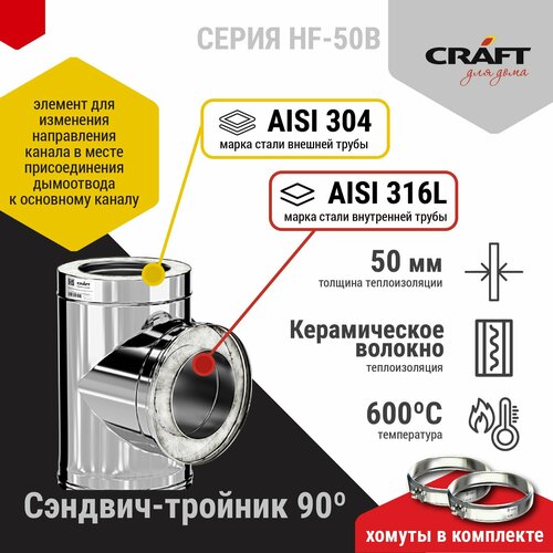 Элемент дымохода сэндвич-тройник 90гр Craft HF-50B (316/0,8/304/0,5) Ф150х250: сравнение цен, характеристики, фото, актуальное наличие и цены.