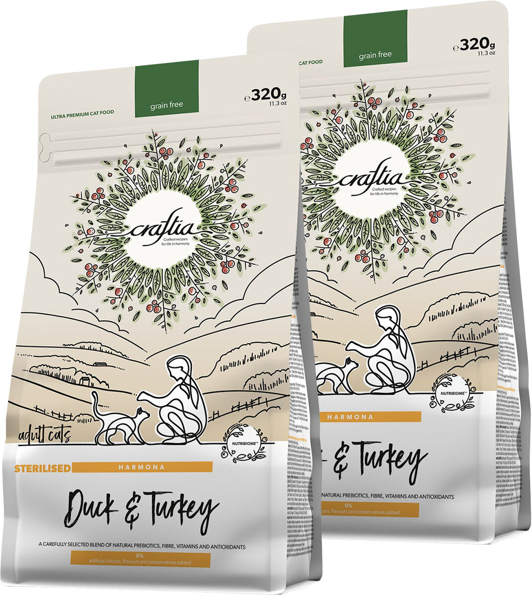 CRAFTIA HARMONA GRAIN FREE STERILISED ADULT CAT DUCK&TURKEY б/з д взр каст и стер кош утка индейкNEW 0,32 + 0,32 кг