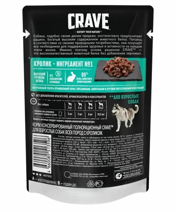 Crave пауч для собак Кролик 85г (28 штук): сравнение цен, характеристики, фото, актуальное наличие и цены.