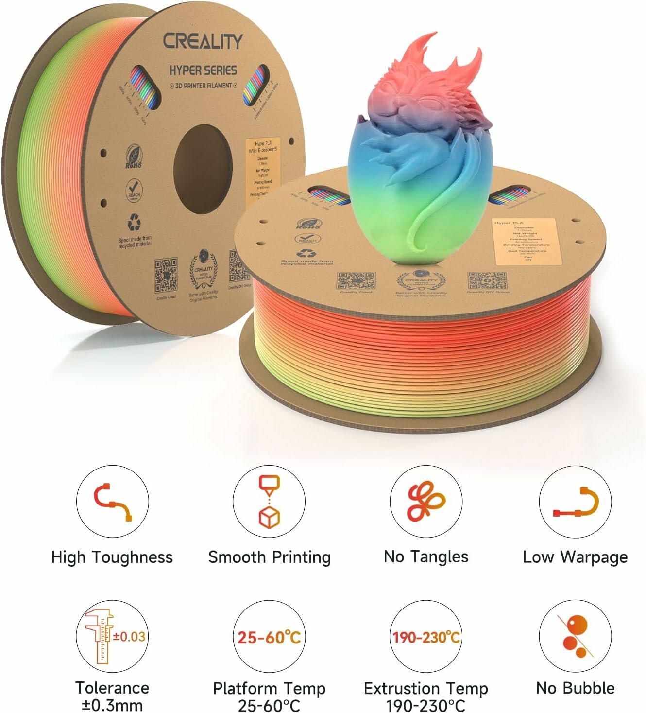 Creality 3D пластик Rainbow Hyper PLA 1,75 мм 1 кг нить для 3D-принтера (Wild bloom-L): сравнение цен, характеристики, фото, актуальное наличие и цены.