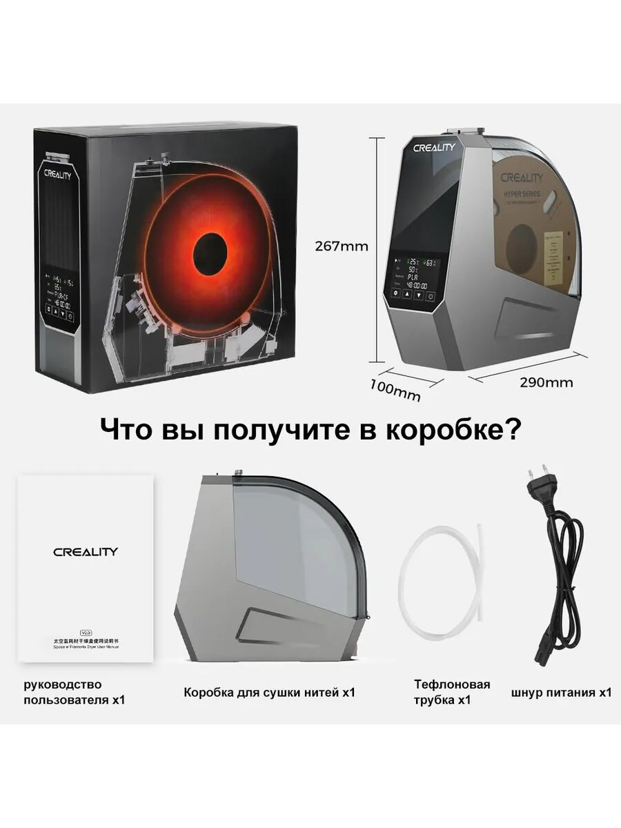Creality 3D Space Pi Filament Dryer Box с контролем температуры и влажности, подходит для разных материалов, до 1 кг: сравнение цен, характеристики, фото, актуальное наличие и цены.