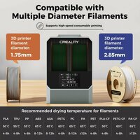 【Широкая совместимость, память параметров при отключении питания】Creality Space PI Dryer Plus совместима с большинством нитей для 3D-принтеров диаметром 1,75 мм/2,85 мм. И может использоваться с различными распространенными нитями, такими как PLA, PETG, TPU, ABS, даже с высокопроизводительными композитными материалами, такими как PLA-CF, PA-CF, ASA. После отключения электроэнергии нитейная сушилка запоминает предыдущие настройки нити и температуры, что позволяет быстро начать сушку.