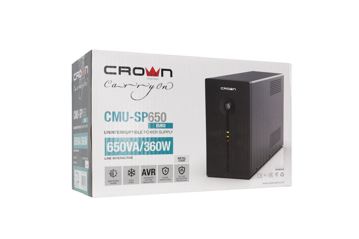 CROWN CM000001490 ИБП ИБП CMU-SP650EURO {650VA, металл, 1x12V/7AH, розетки 2*EURO+1*IEC bybass}: сравнение цен, характеристики, фото, актуальное наличие и цены.