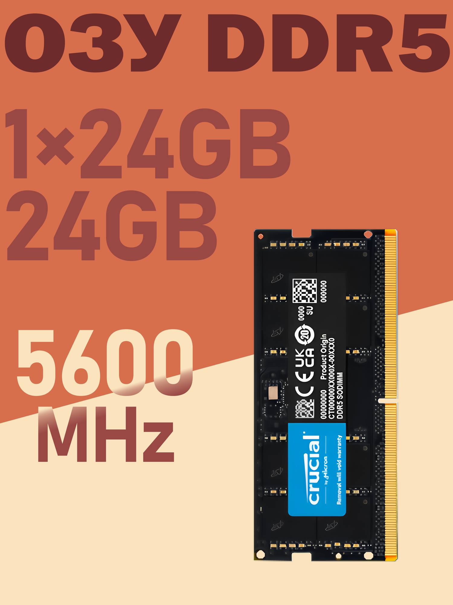 Представляем вашему вниманию высокопроизводительный модуль памяти DDR5-5600 от Crucial. Эта модель предназначена для ноутбуков и специфических устройств, требующих SODIMM форм-фактор. С объемом 24 ГБ (распределенных на 1 ГБ с 24 планками), эта память обеспечит вашу систему необходимой мощностью для выполнения многозадачности и процессорных нагрузок.
