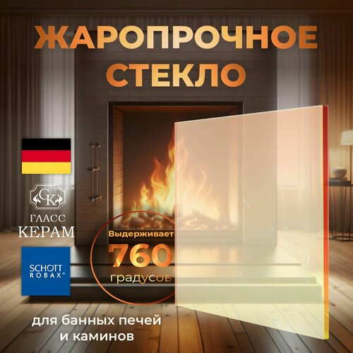 Немецкое оригинальное огнеупорное стекло Robax для каминов, банных и отопительных печей, чугунных дверей. Термостойкая стеклокерамика выдерживает 760 градусов и имеет абсолютную устойчивость к резким перепадам температуры. Толщина стекла 4 мм.
