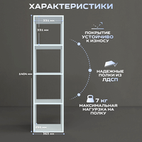 Напольный стеллаж — это стильное и функциональное решение для вашего интерьера, он отлично подойдёт для гостиной, кухни и детской комнаты. Имеет минималистичный дизайн и различные варианты расцветки, благодаря чему будет прекрасно смотреться в любом интерьере, от классического до лофт. Прочные полки из высококачественного ЛДСП обеспечивают надежность и долговечность конструкции.
