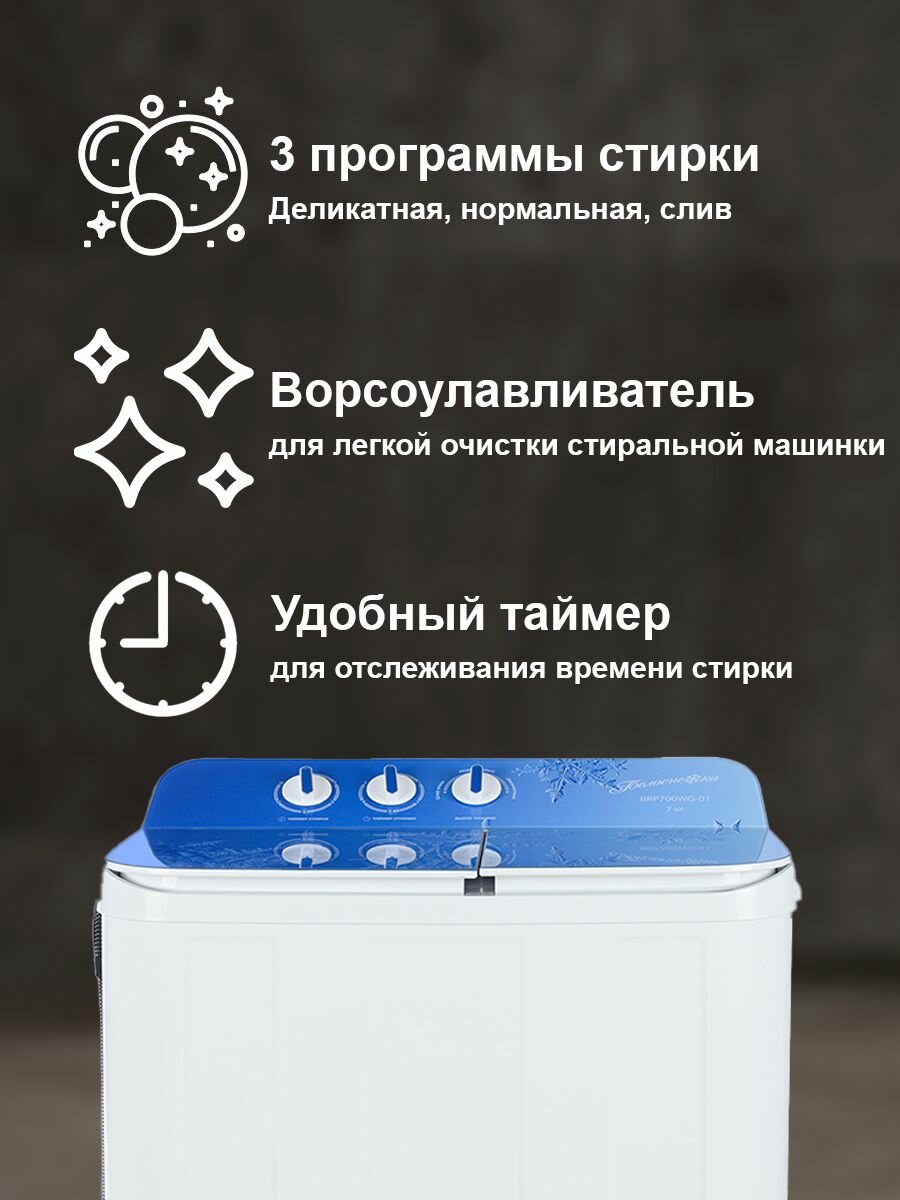 Стиральная машина белоснежка BRP700WG-01, 2 бака, с отжимом, с центрифугой, активаторная, 7 кг, белая, синяя: сравнение цен, характеристики, фото, актуальное наличие и цены.