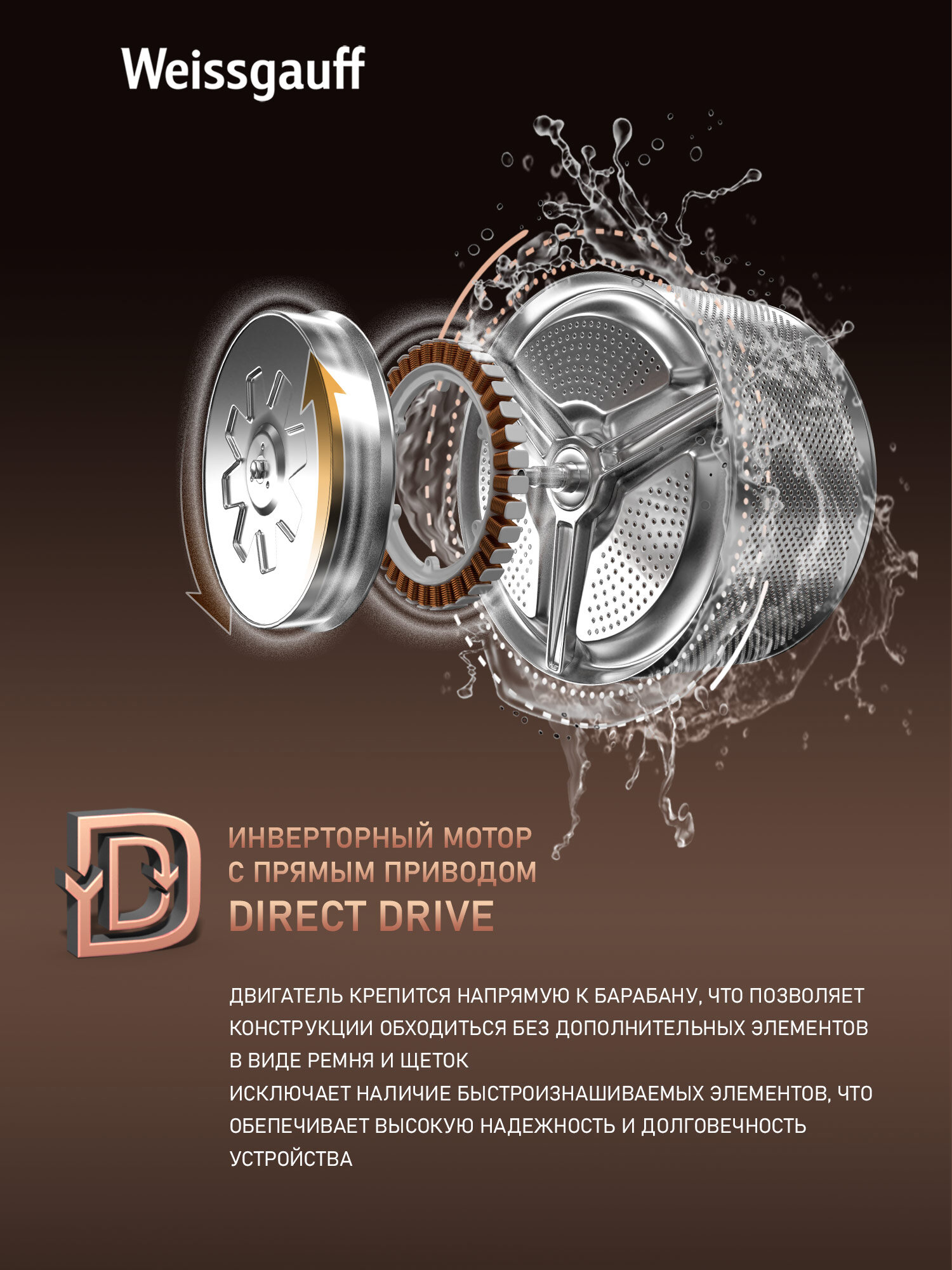 10 лет гарантии на инверторный двигатель с прямым приводом - это живое подтверждение немецкой уверенности Weissgauff в качестве выпускаемой нами продукции!