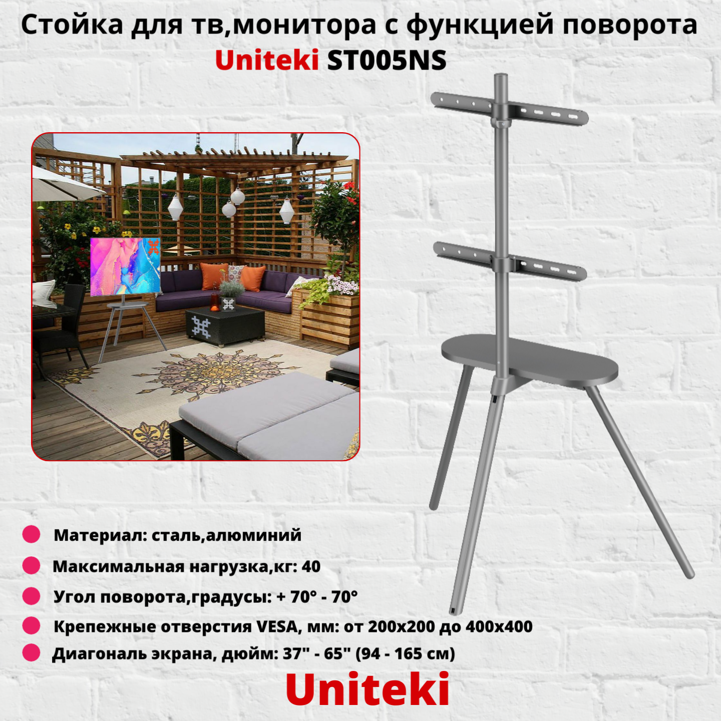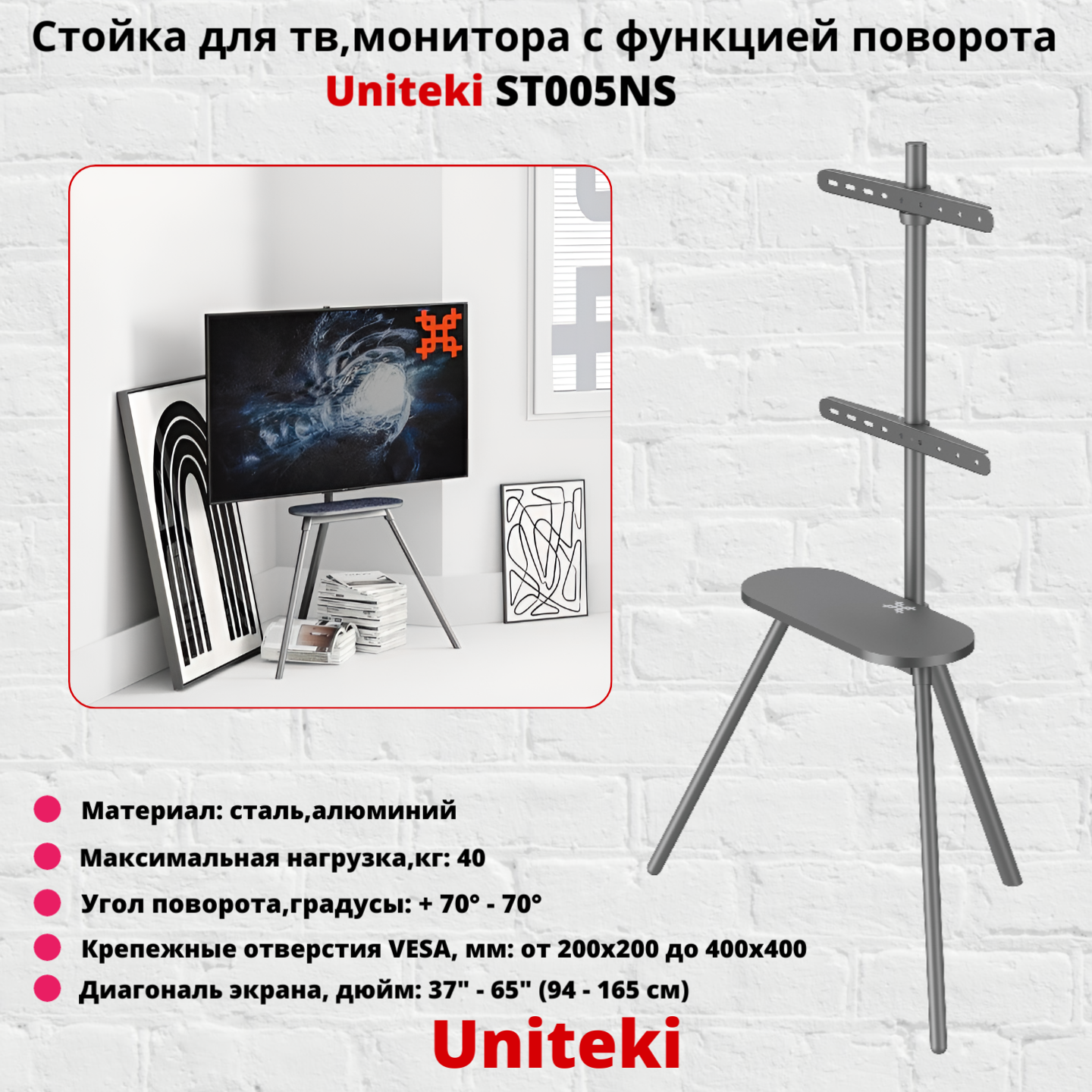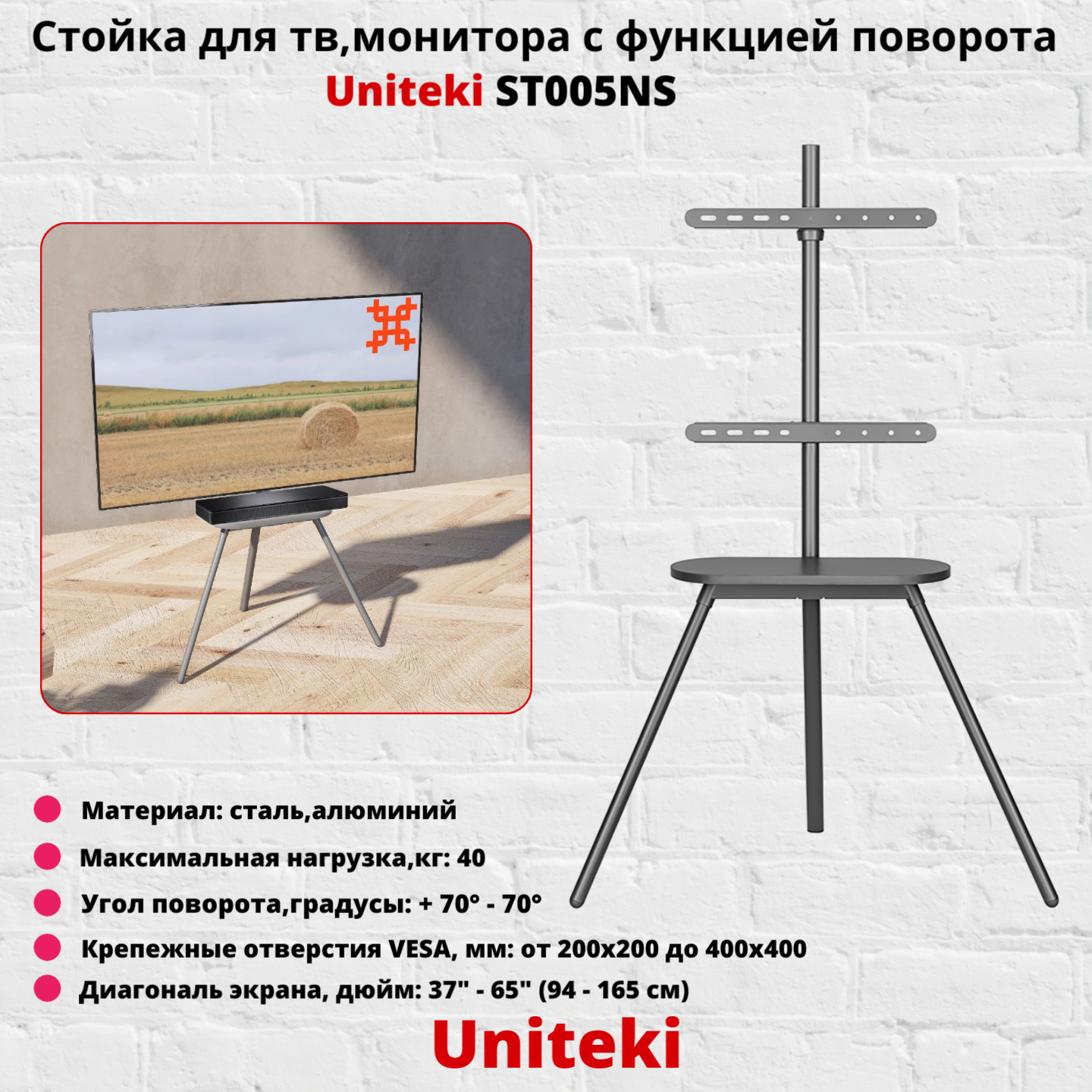 Стойка-подставка UNITEKI ST005NS предназначена для ТВ диагональю экрана от 32 до 65 дюймов (81 – 165.1 см).